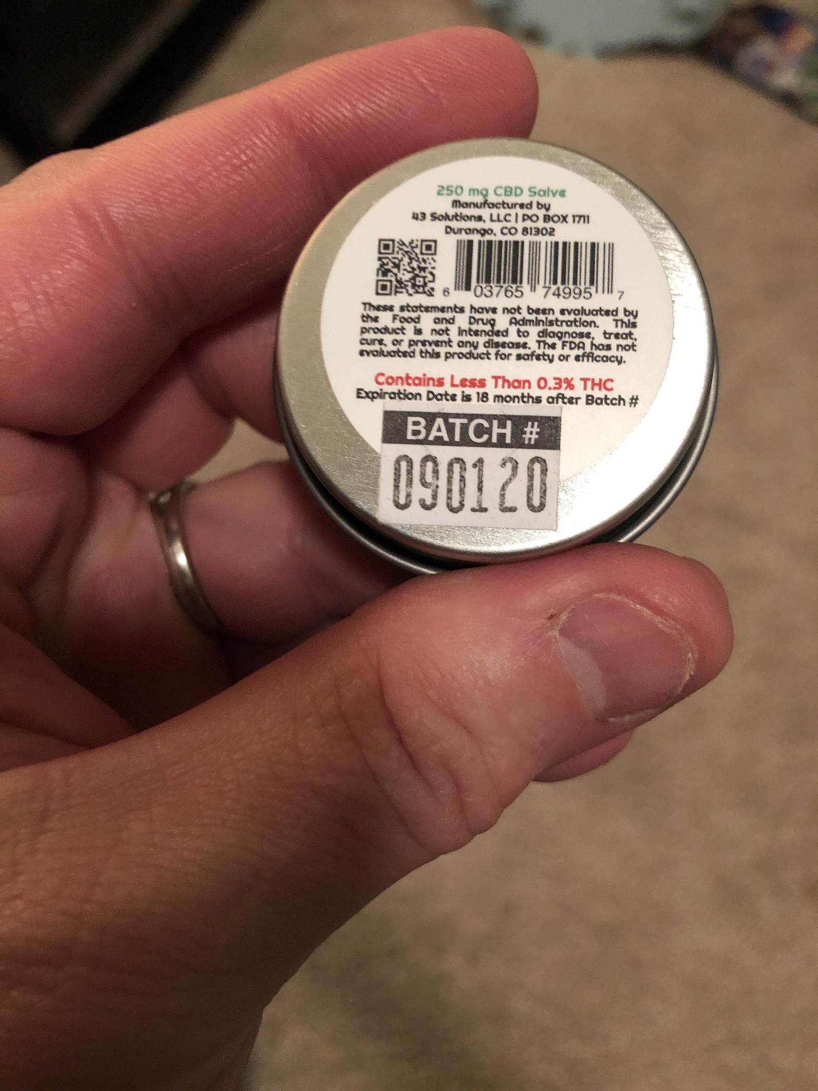 I got three samples to try: a couple of different salves (Pocket Tin CBD Hemp Oil Salve (75mg)) and some tincture (CBD Hemp Oil Tincture (1000mg))