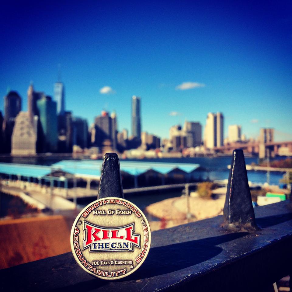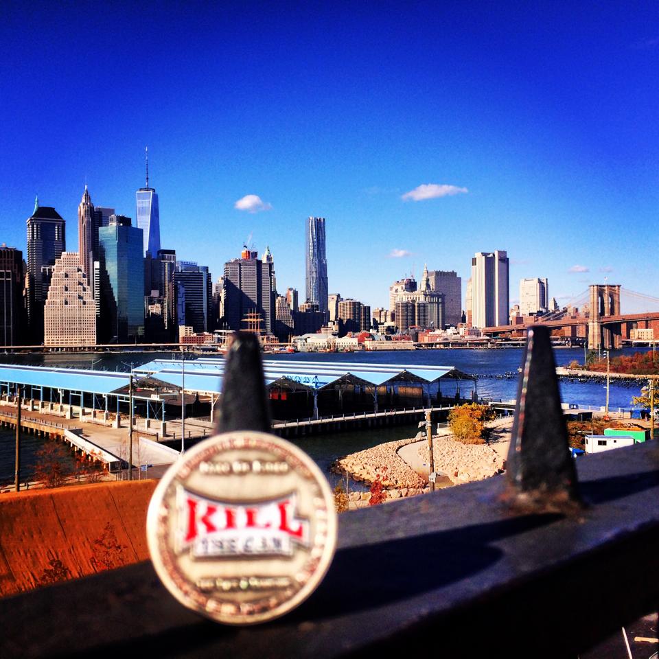 KillTheCan.org forum member FkSkoal in Brooklyn, NY with Freedom Tower on the left and the Brooklyn Bridge on the right.
