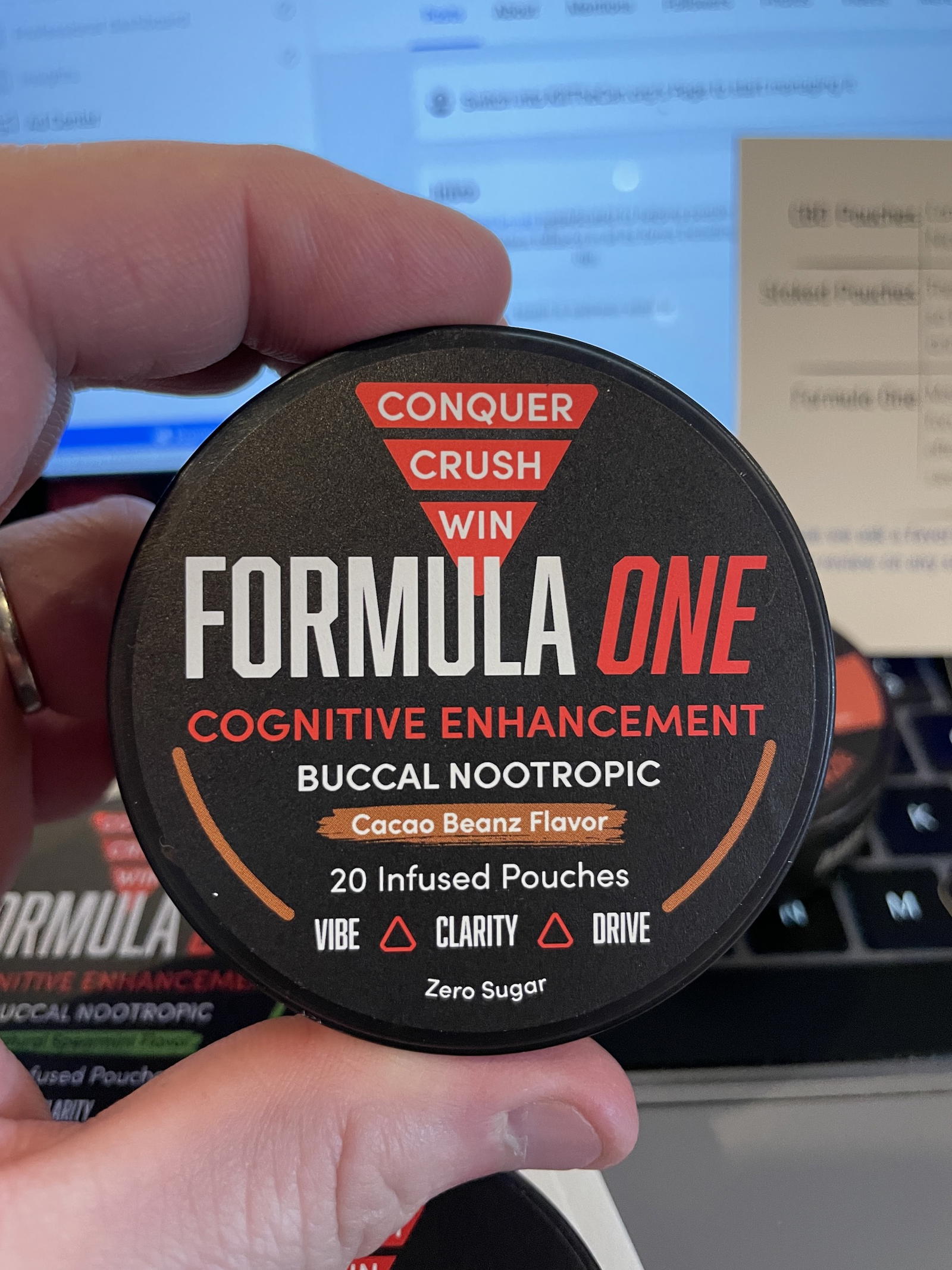 Formula One – Made to boost mood, enhance memory and increase focus. These tart pouches are best in morning and early afternoon. They contain no stimulants, but can impact sleep. Limit Formula One to 3 pouches per day.
