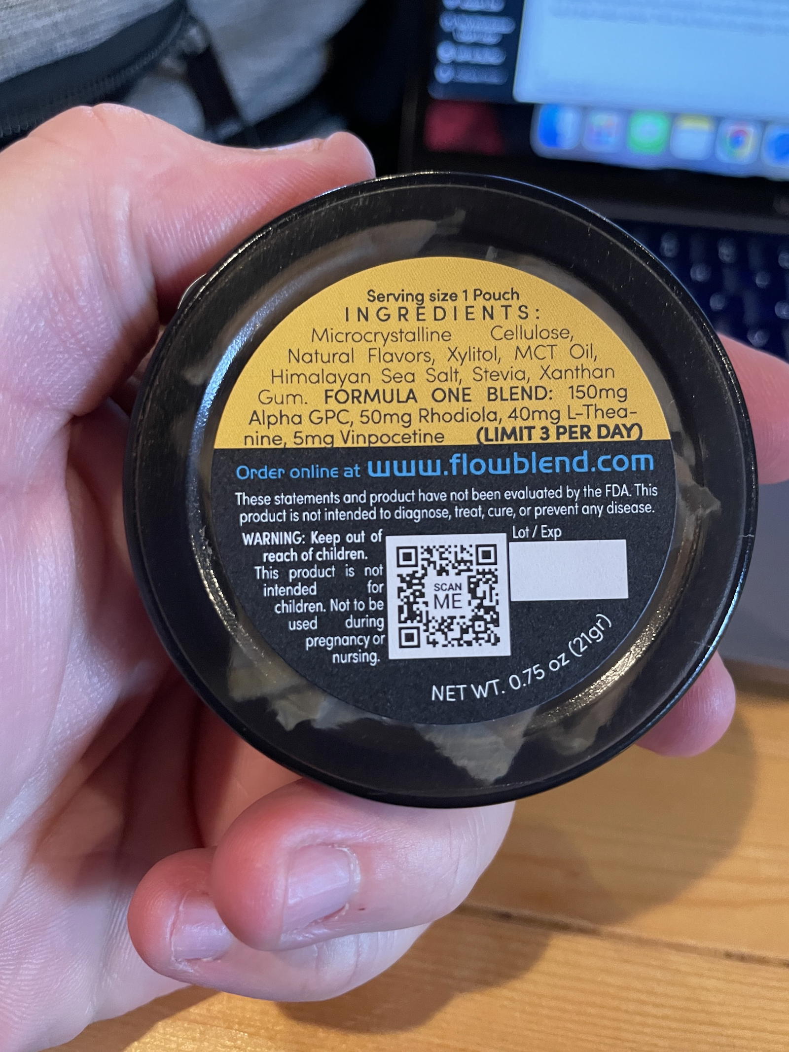 The back of the can offers a QR code which when scanned will take you to the FlowBlend website for some additional info about the product.