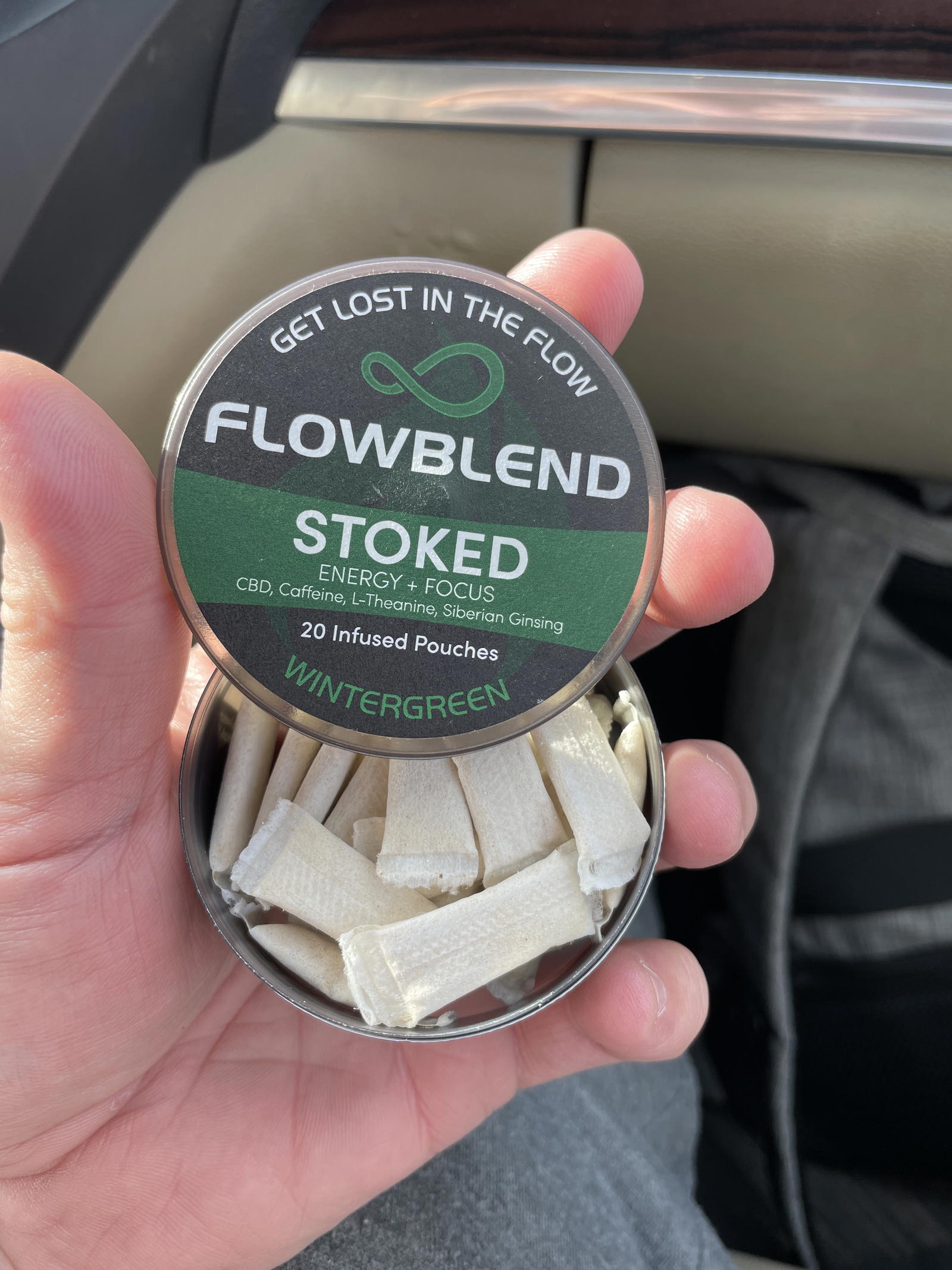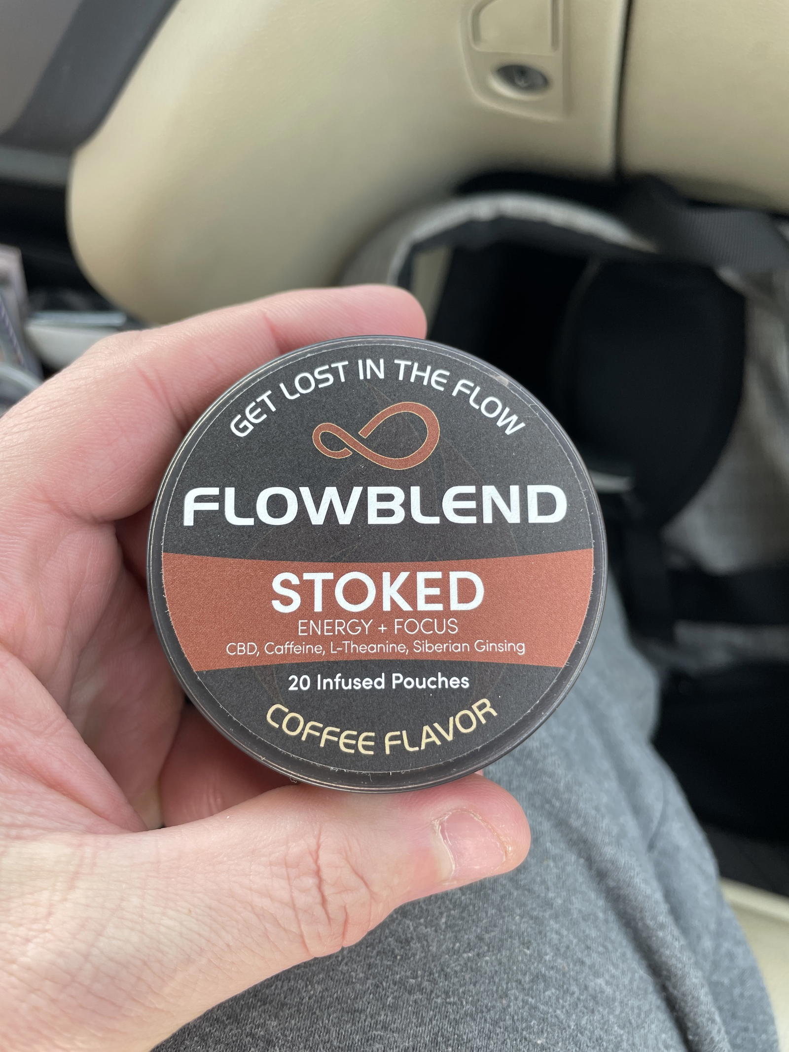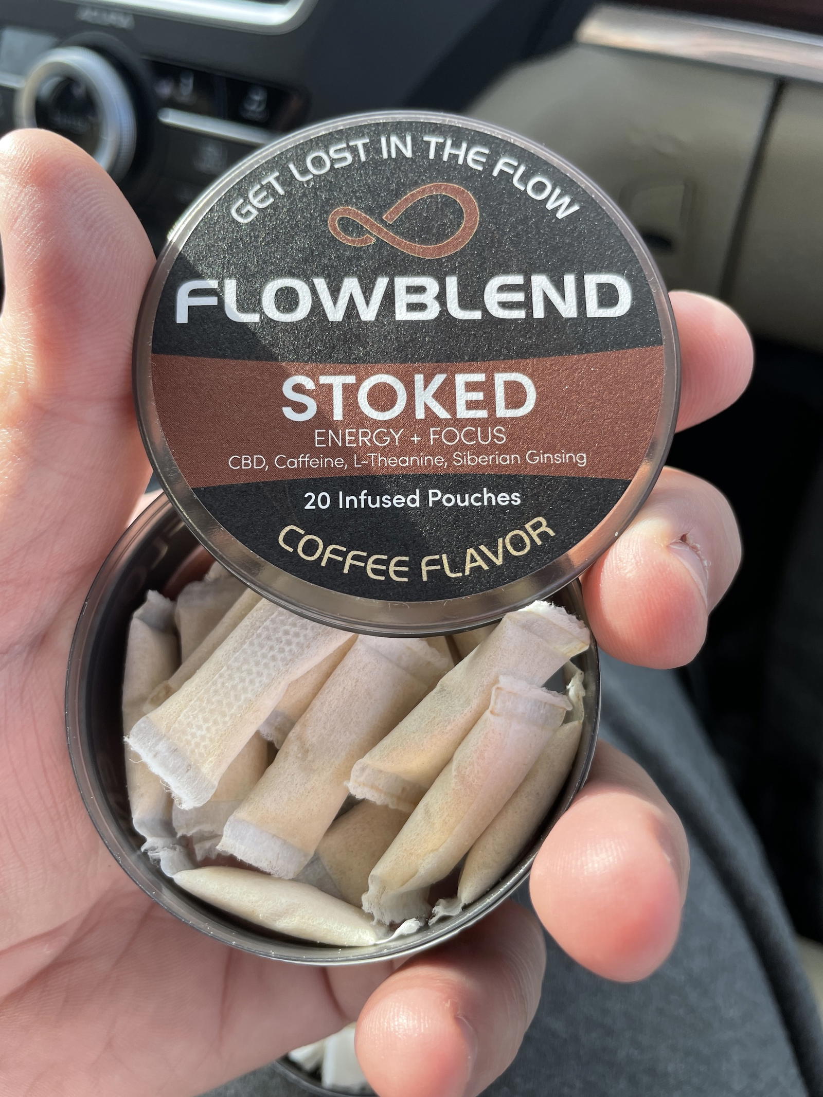 The FlowBlend ‘Stoked’ CBD Pouch ignites Energy, Focus, Memory, and Mood. This pouch is infused with CBD, L-Theanine, Caffeine and Siberian Ginseng. This Proprietary Blend was carefully formulated to improve performance in whatever you are doing.