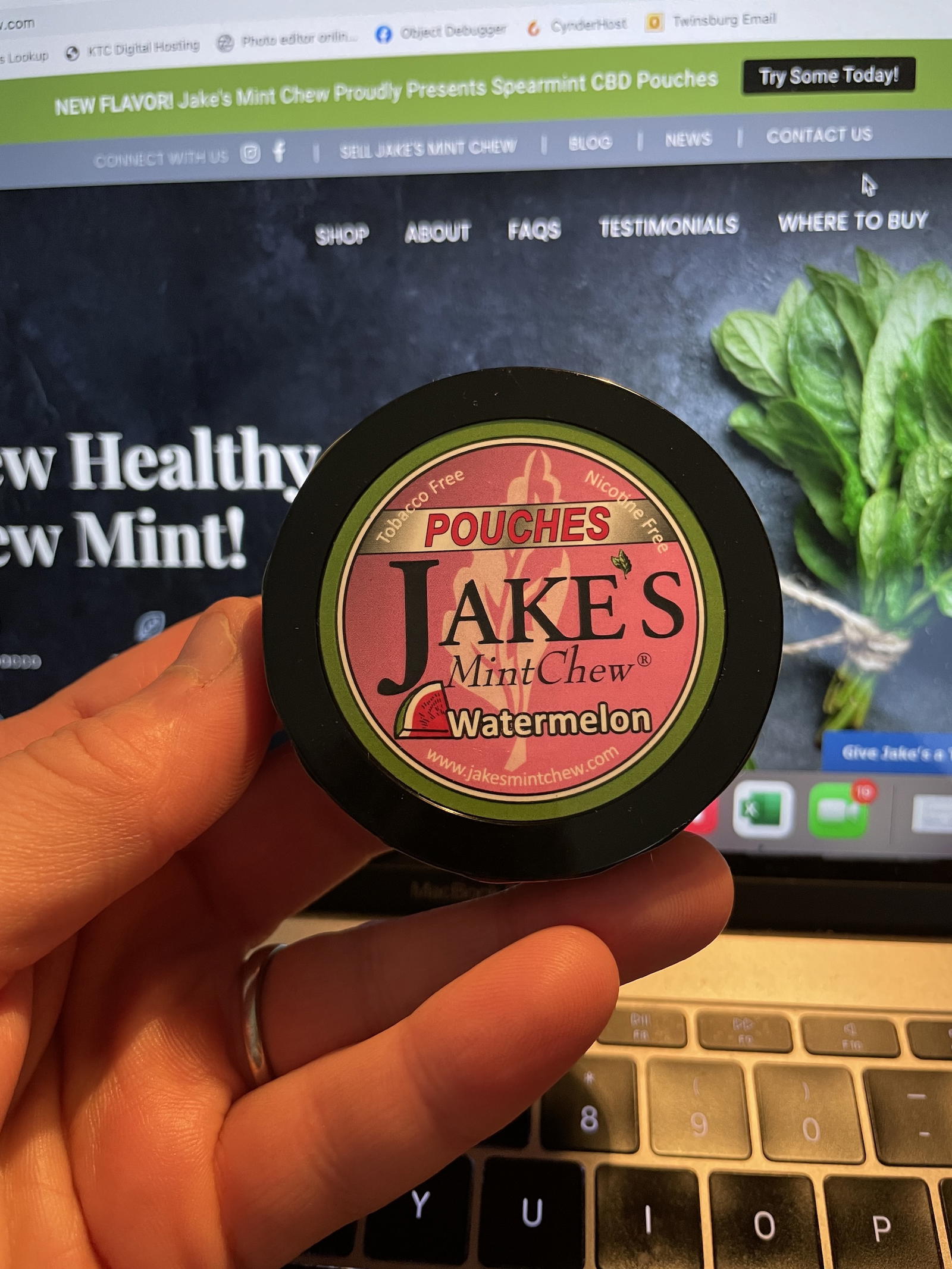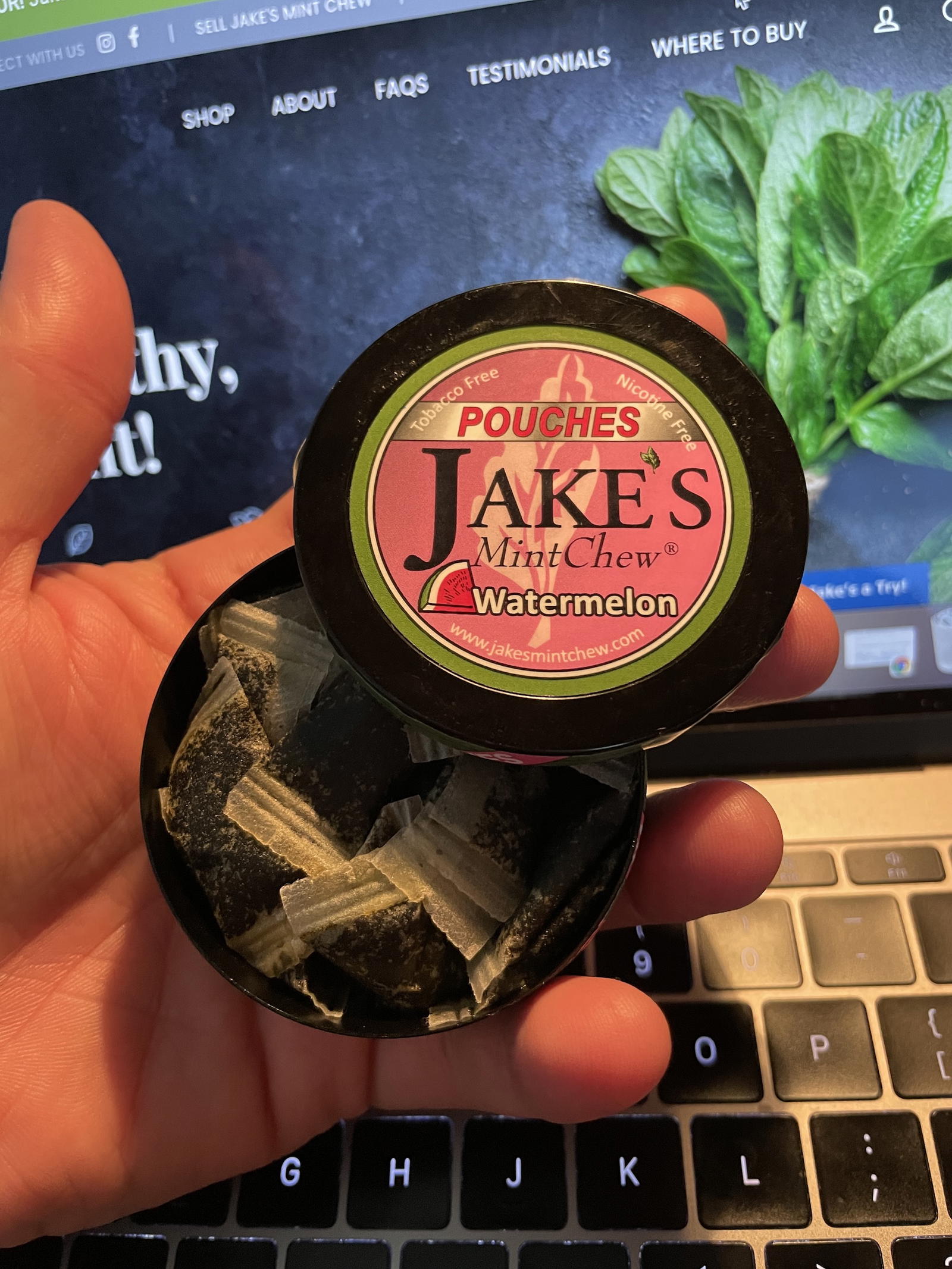 Watermelon Pouches are currently available for purchase on their website. You’ll need to get a 10 tin pack of Watermelon or you can do a mix and match with another flavor. Jake’s Mint Chew can be found on the web at www.jakesmintchew.com