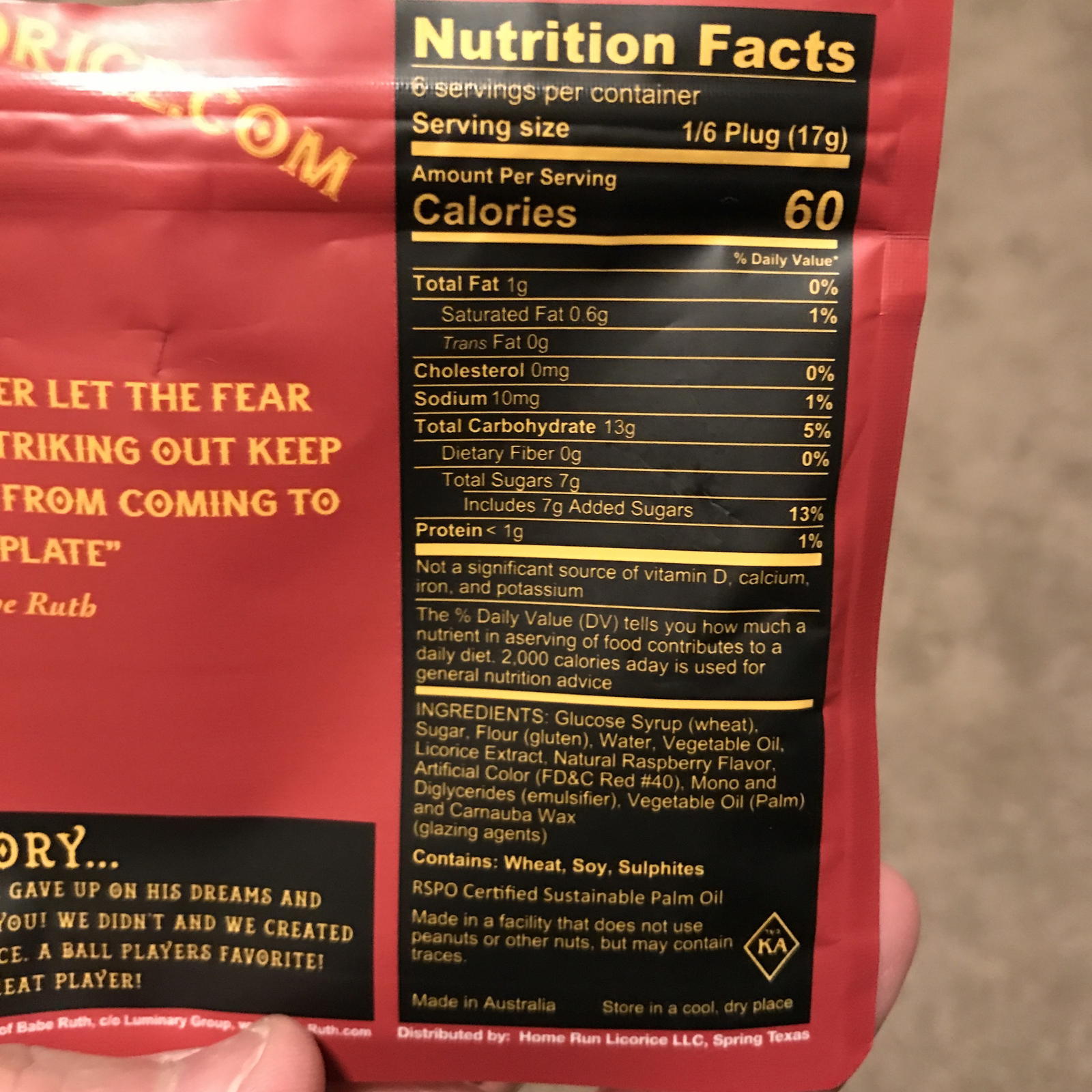 Long Ball Round Tripper Red Licorice Ingredients